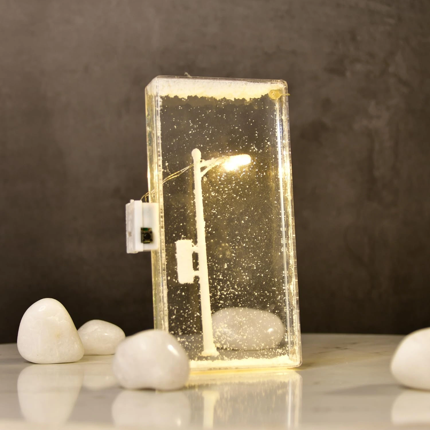 چراغ دکوری شب برفی یک دکوری شیک و متفاوت است که با طراحی چراغ خیابانی کلاسیک و افکت برف نورانی، حس گرم و دلنشینی به فضا می‌بخشد. این محصول ترکیبی از هنر دکوراسیون و نورپردازی است و می‌تواند انتخابی ایده‌آل برای خانه، کافه، دفتر کار یا حتی هدیه‌ای خاص باشد.