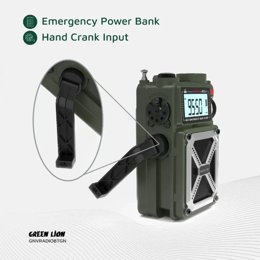 باتری داخلی: 4000 میلیآمپرساعت با قابلیت استفاده بهعنوان پاوربانک توان خروجی: 14 وات – مناسب برای شارژ دستگاههای هوشمند و پخش صدا رادیو چندباند: پشتیبانی از AM / FM / SW با تنظیم دستی اتصال بیسیم: بلوتوث برای پخش موسیقی از گوشی یا تبلت چراغ قوه LED: پرقدرت و مناسب شرایط اضطراری قطبنما داخلی: کمک به جهتیابی در طبیعت و سفر منبع شارژ: کابل USB و پنل خورشیدی برای مواقعی که دسترسی به برق ندارید جنس بدنه: ساختهشده از ABS مقاوم و سبک